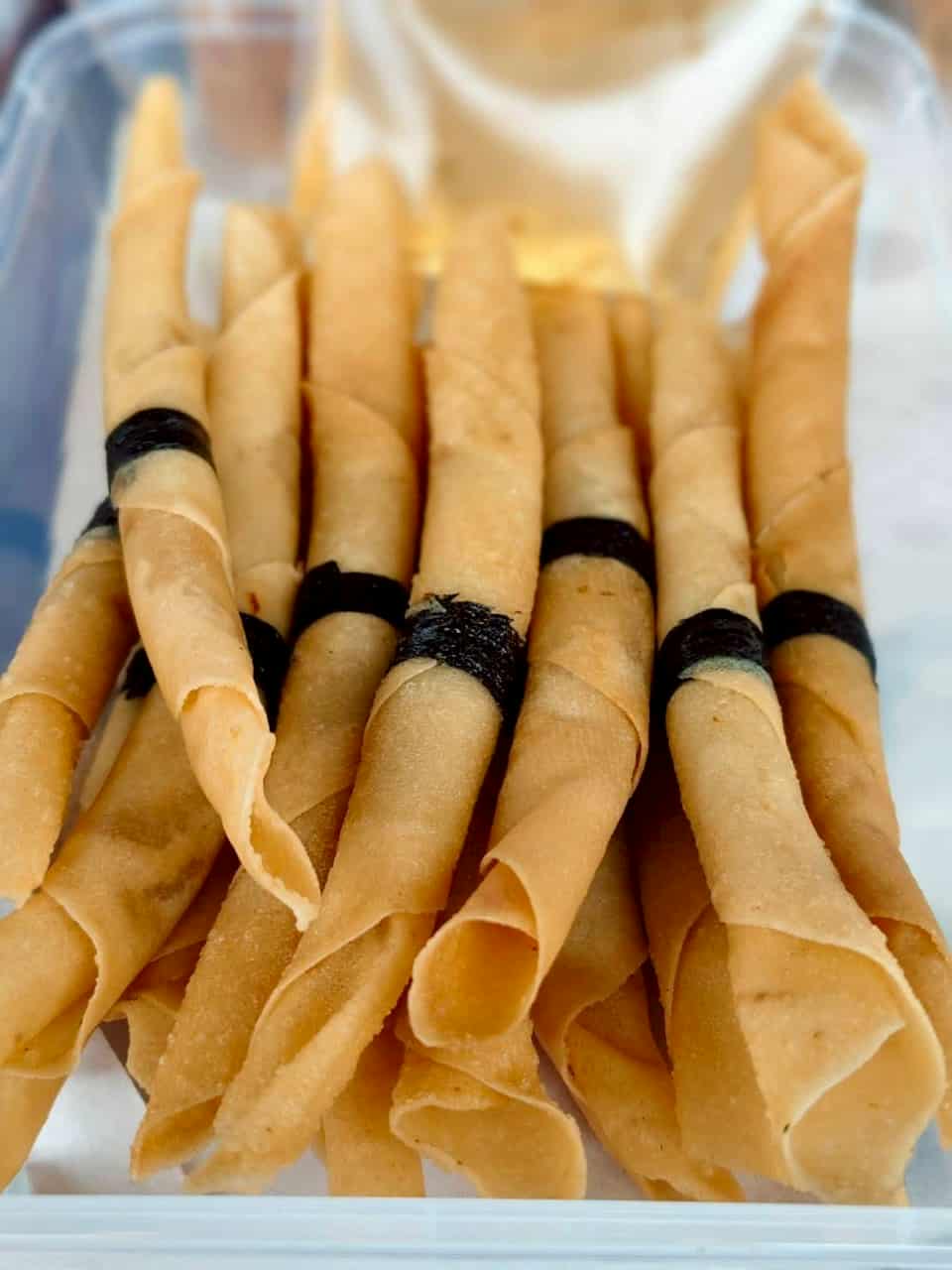 นำแผ่นแป้งปอเปี๊ยะมาห่อเนื้อปลาเผาะที่ผสมเครื่องปรุงต่างๆ จากนั้น นำไปทอดด้วยน้ำมันสดใหม่ ได้เป็นขลุ่ยปลาเผาะกรุบกรอบ นำไปจิ้มในซอสต่างๆได้เลย เช่น ชีส น้ำจิ้มบ๊วย ซอสพริก ซอสมะเขือเทศ เป็นต้น เรามีผลิตภัณฑ์ทั้งแบบทอดและแบบไม่ทอดที่สามารภชถเก็บไว้ในตู้เย็นได้หลายเดือน