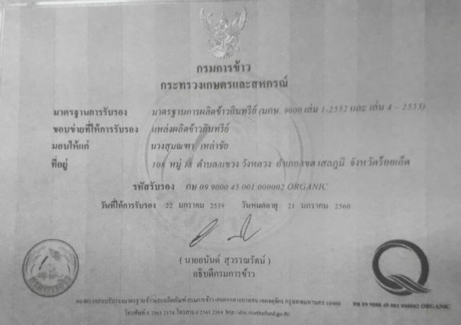 ข้าวไรซ์เบอรี่ ตราอารยะฟาร์ม ได้รับมาตรฐานการรับรอง คือ มาตรฐานการผลิตข้าวอินทรีย์